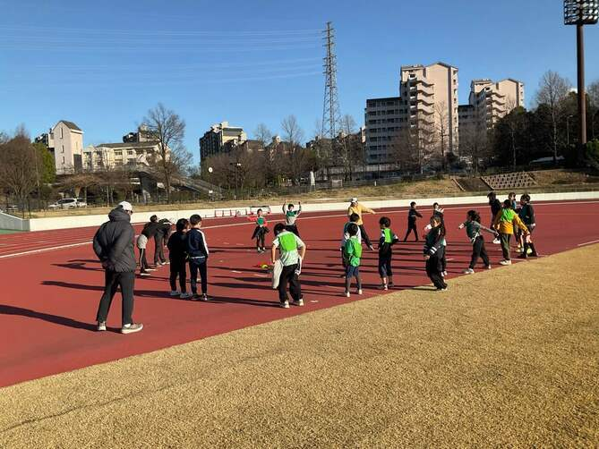 最後のジュニアジョギングスクール前半は、いつものように競技場で練習を行いました。
